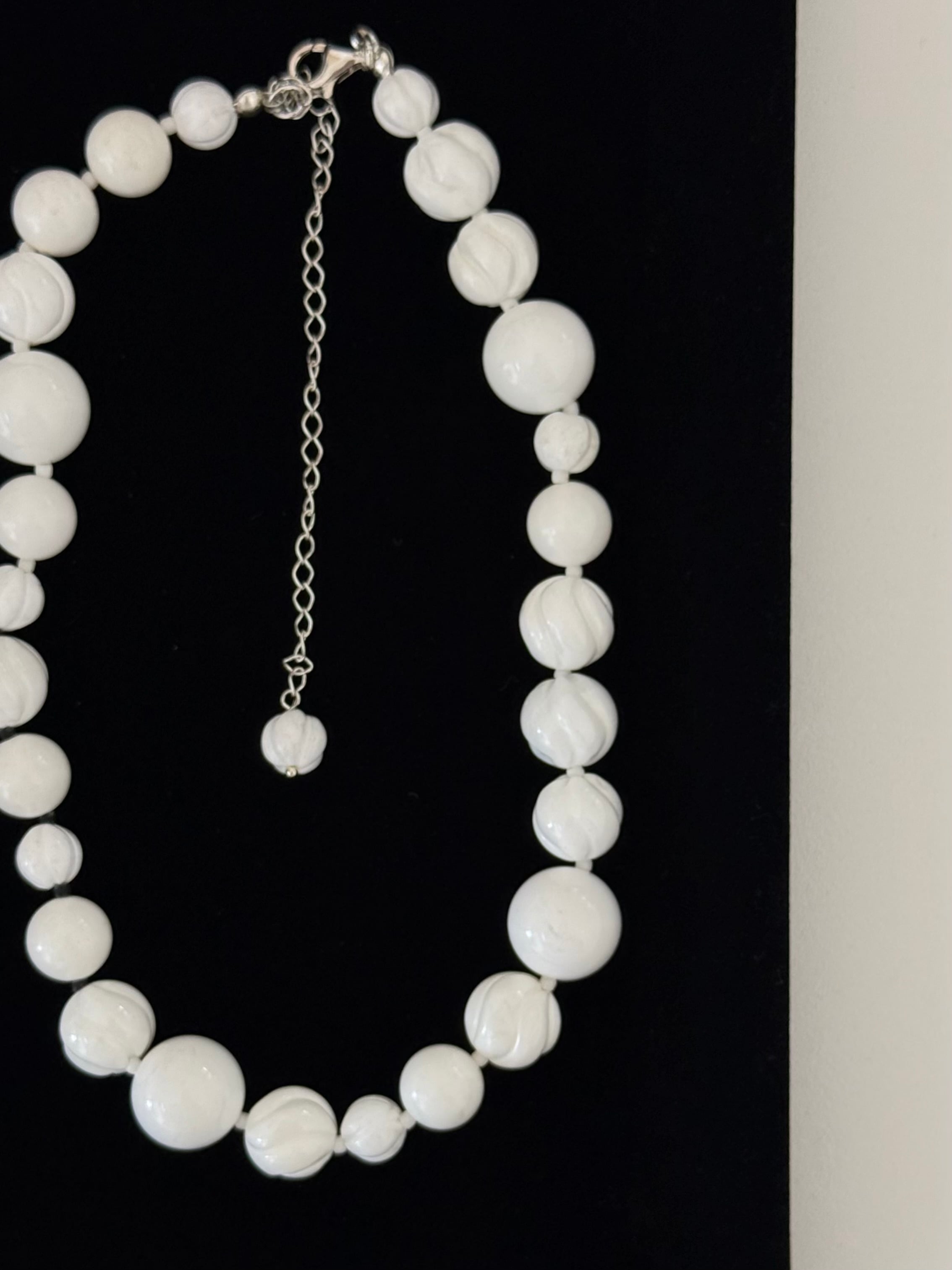 異なる大きさのshellとwhite onyx beadsを組み合わせました●⚫︎●⚫︎●