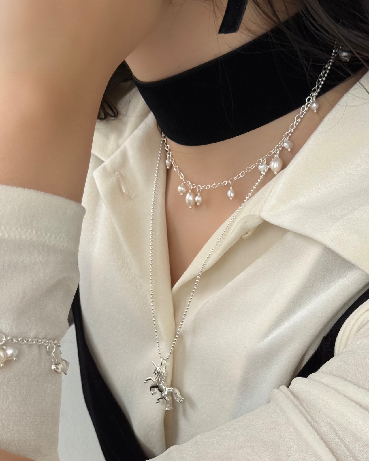 pearl necklaceとも組み合わせれるようball chain necklaceとsilverx pearImix の2タイプご用意してます!