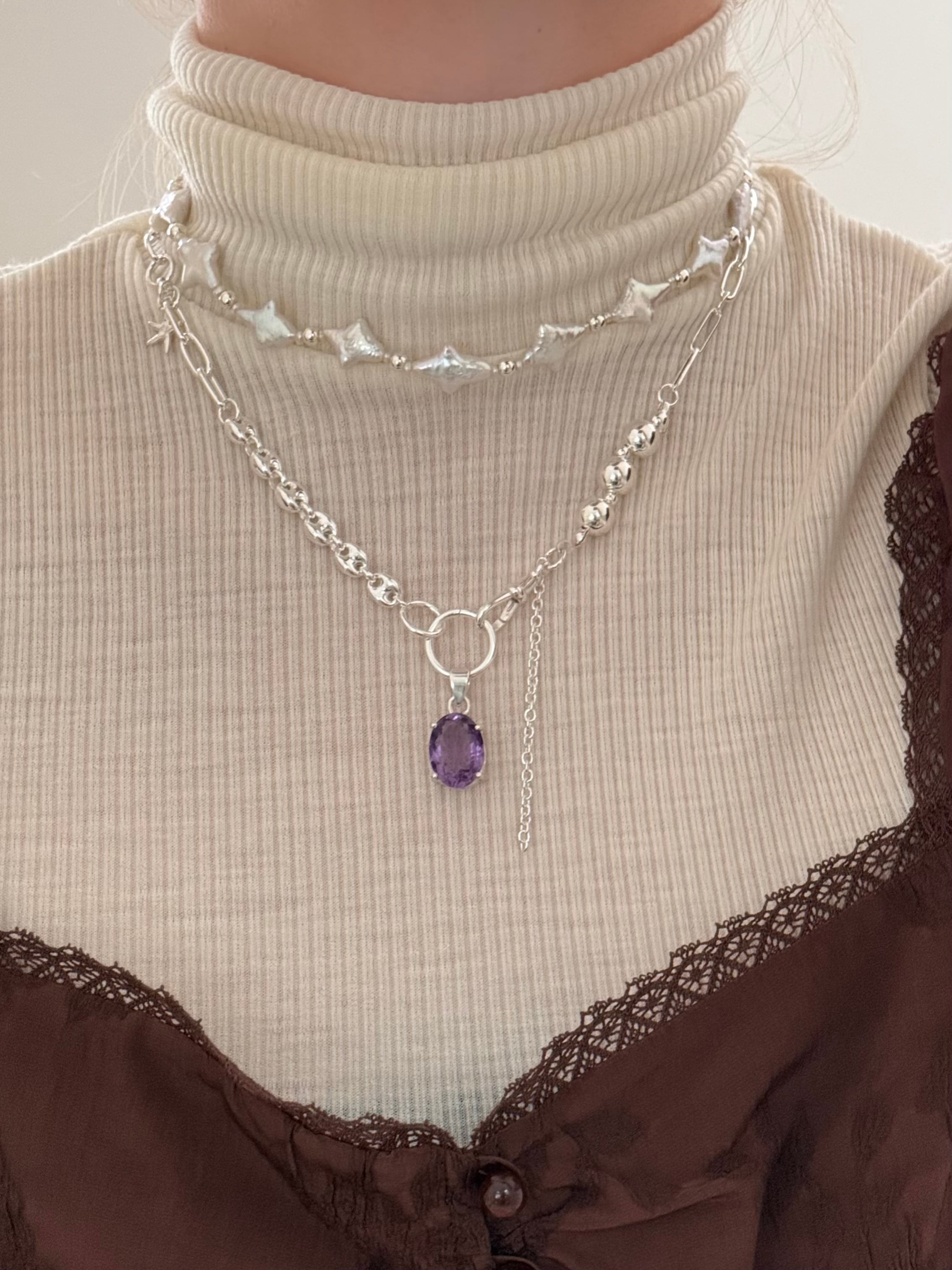ネックレスはもちろん、留め具を外すとbraceletにもなる2way仕様です.ᐟ