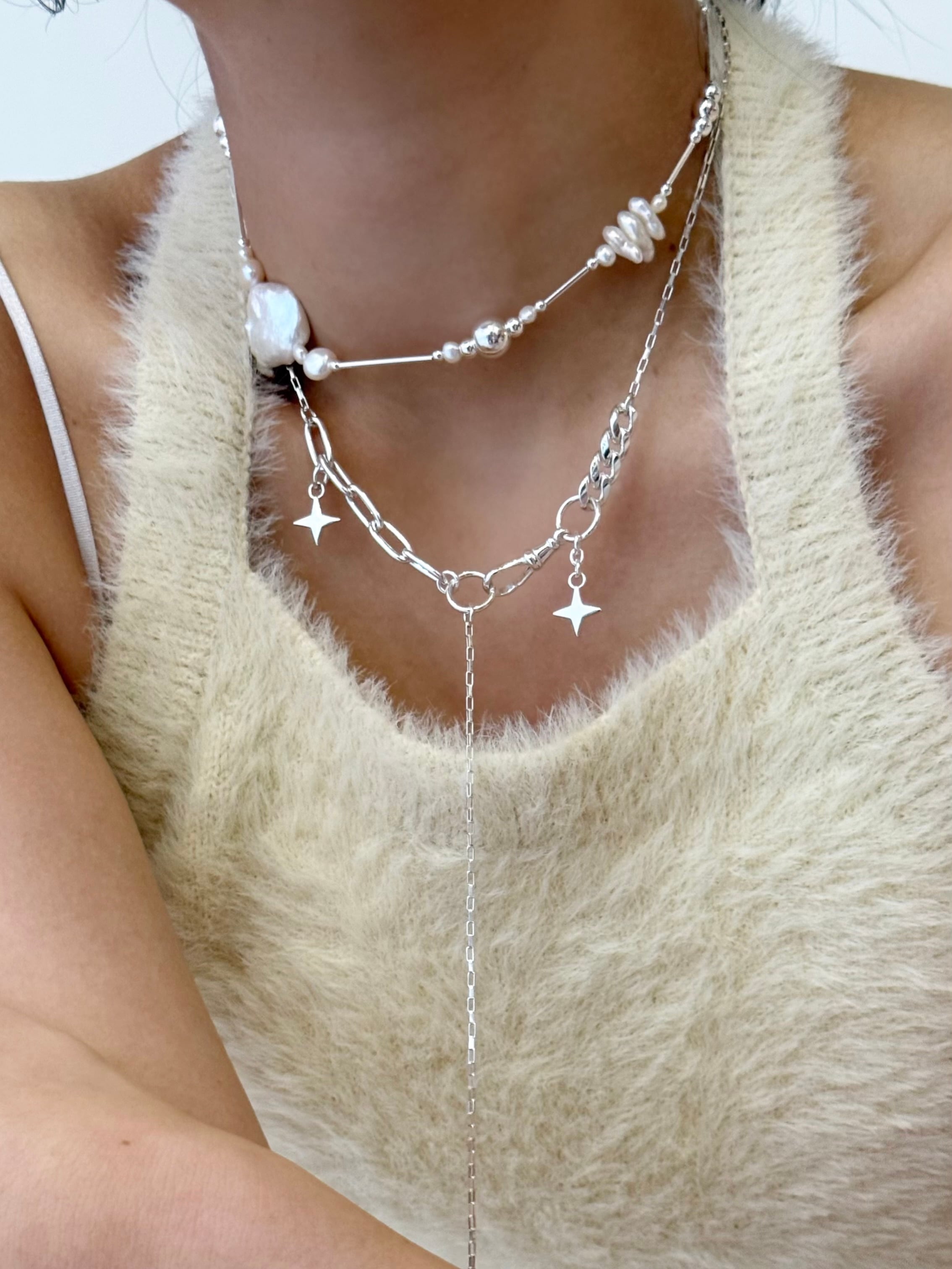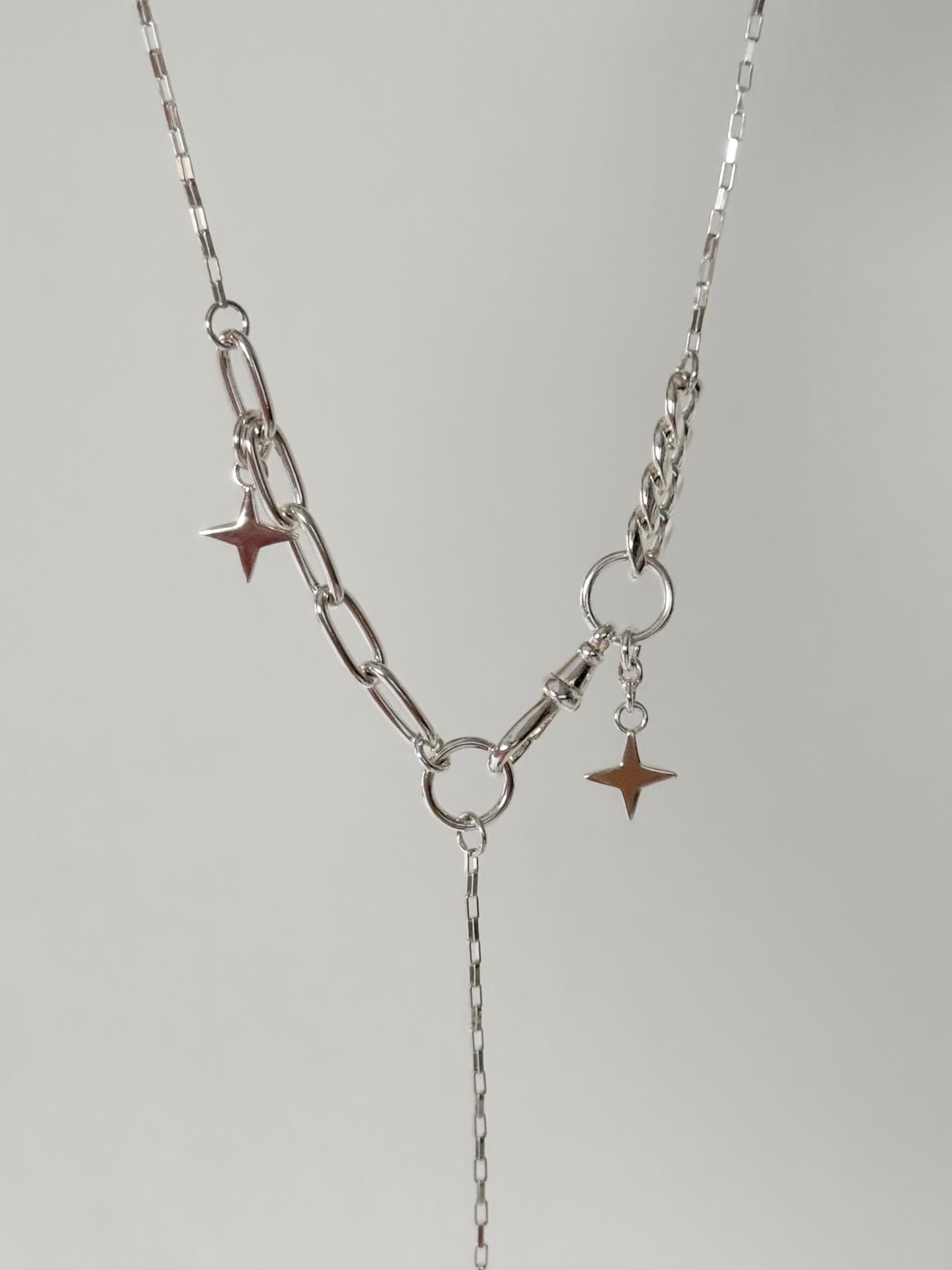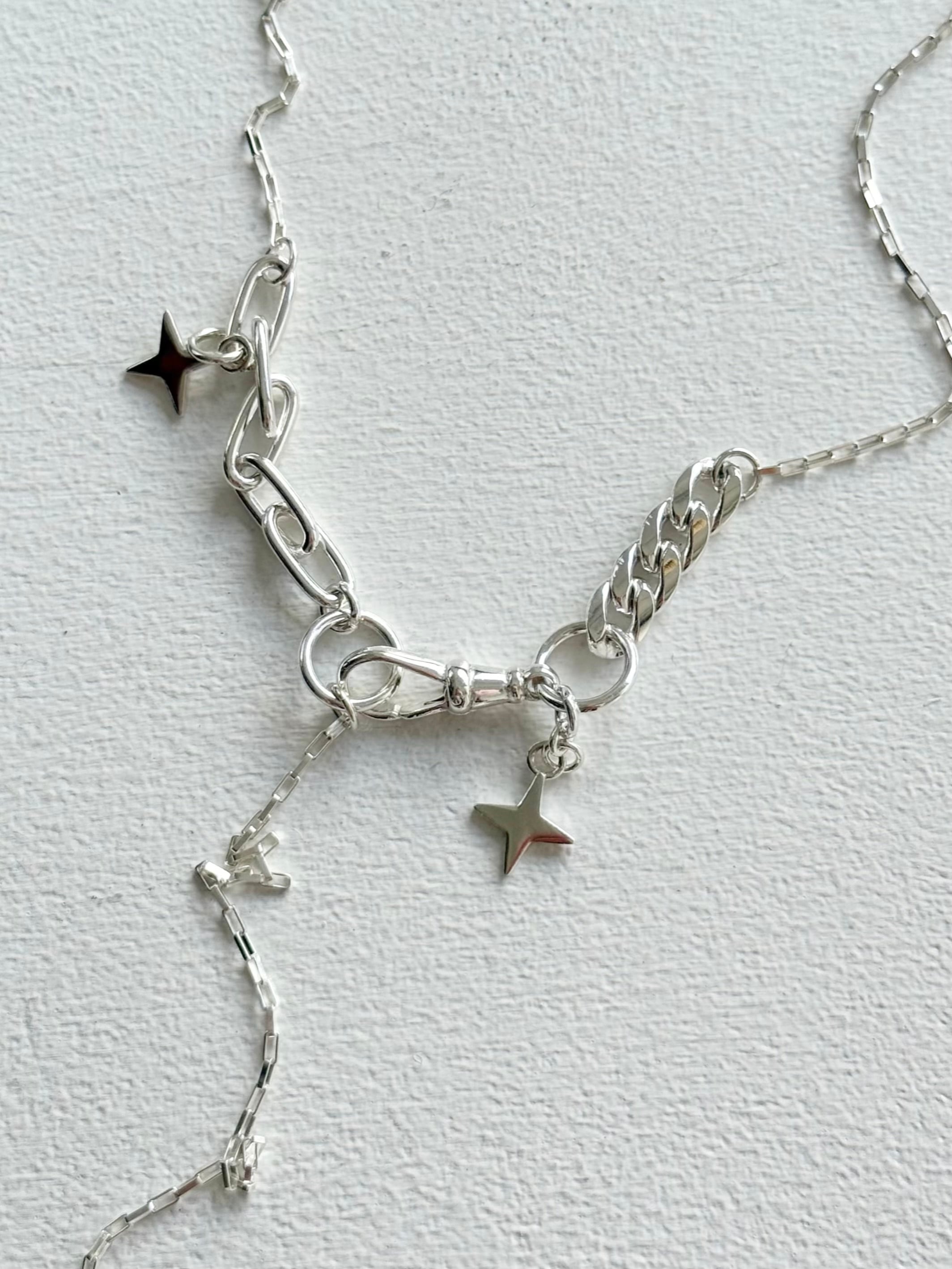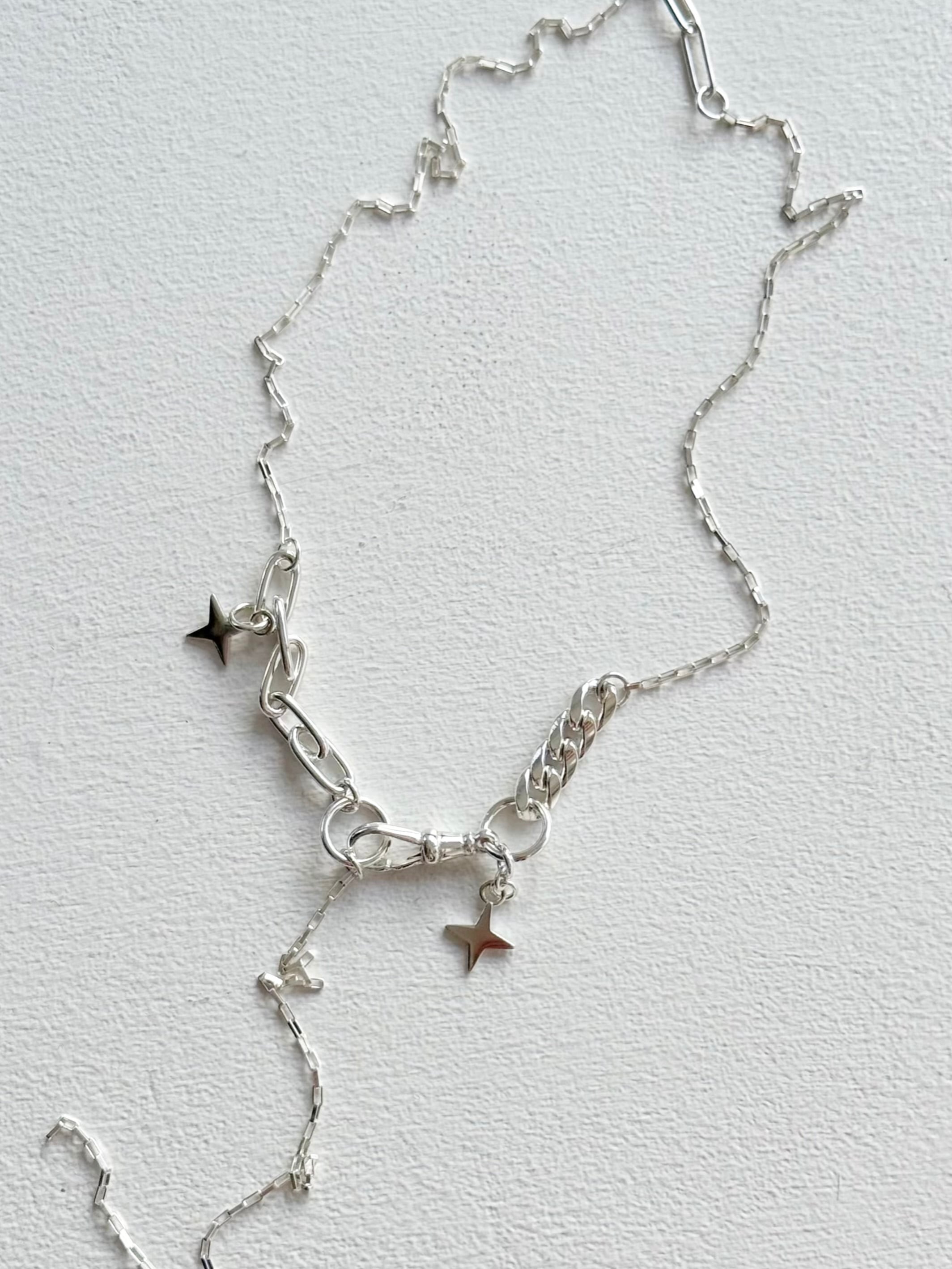 ダイヤ型スターモチーフと、色んなデザインのチェーンを組み合わせたスペシャルなネックレス✧