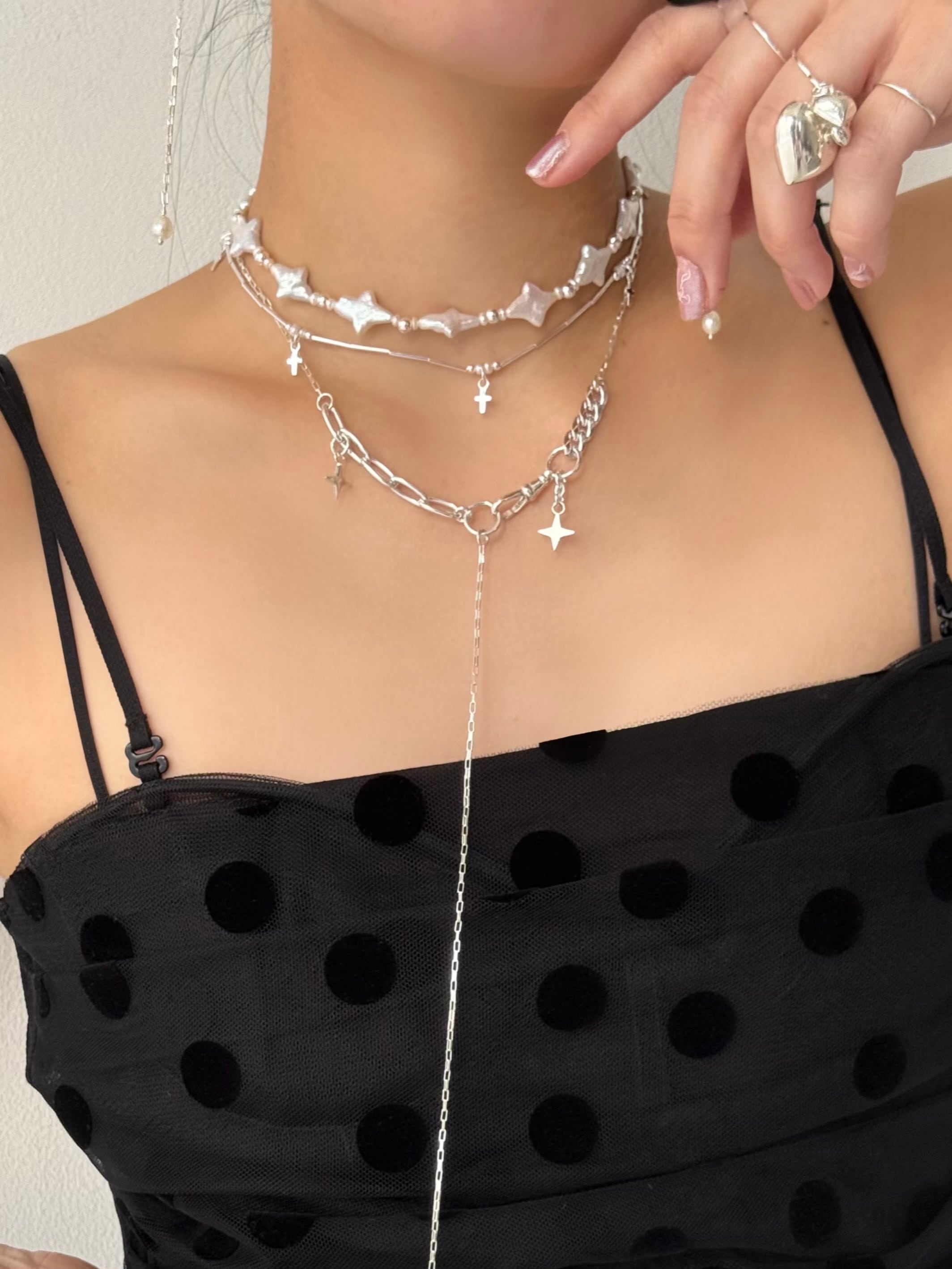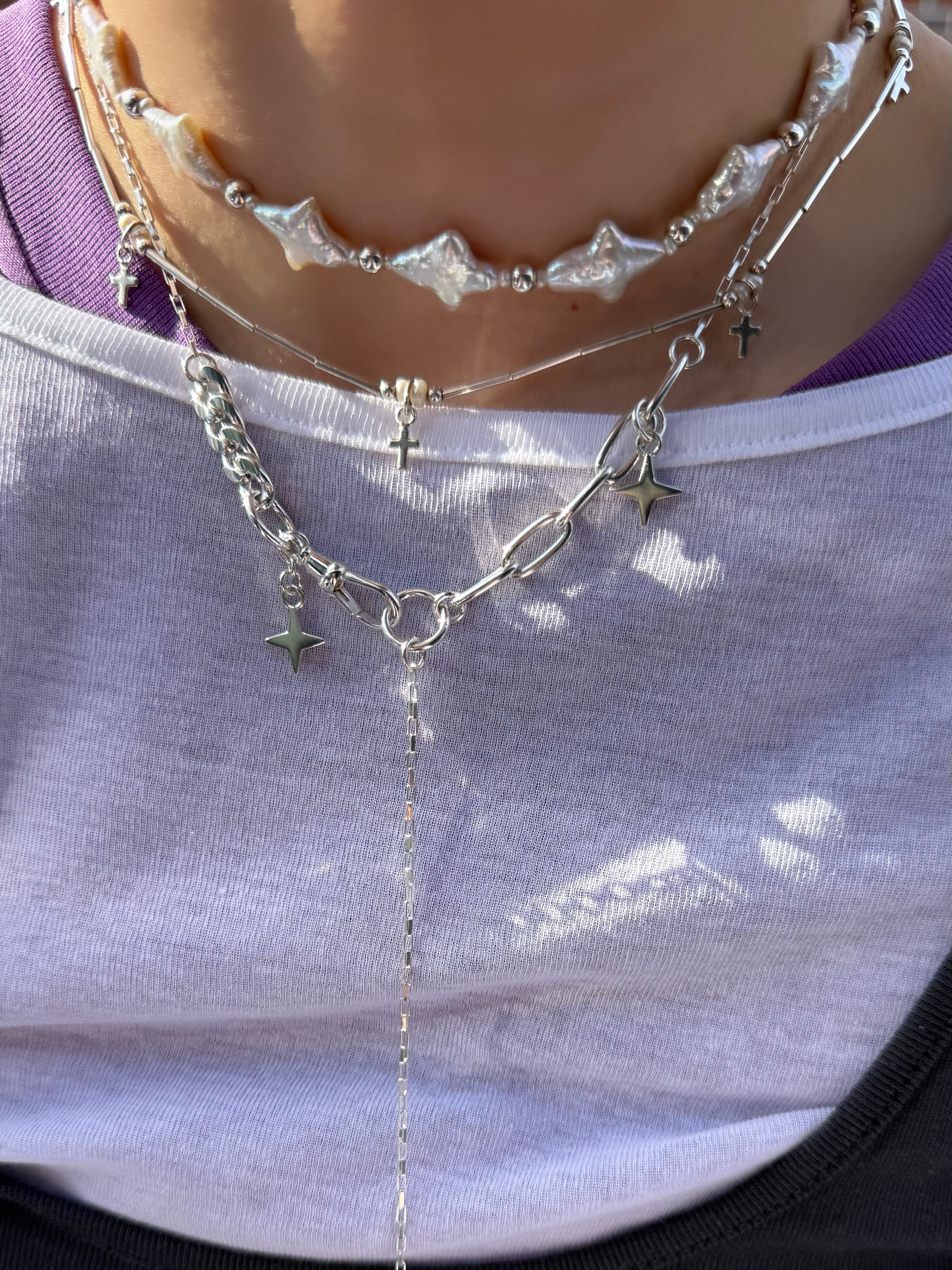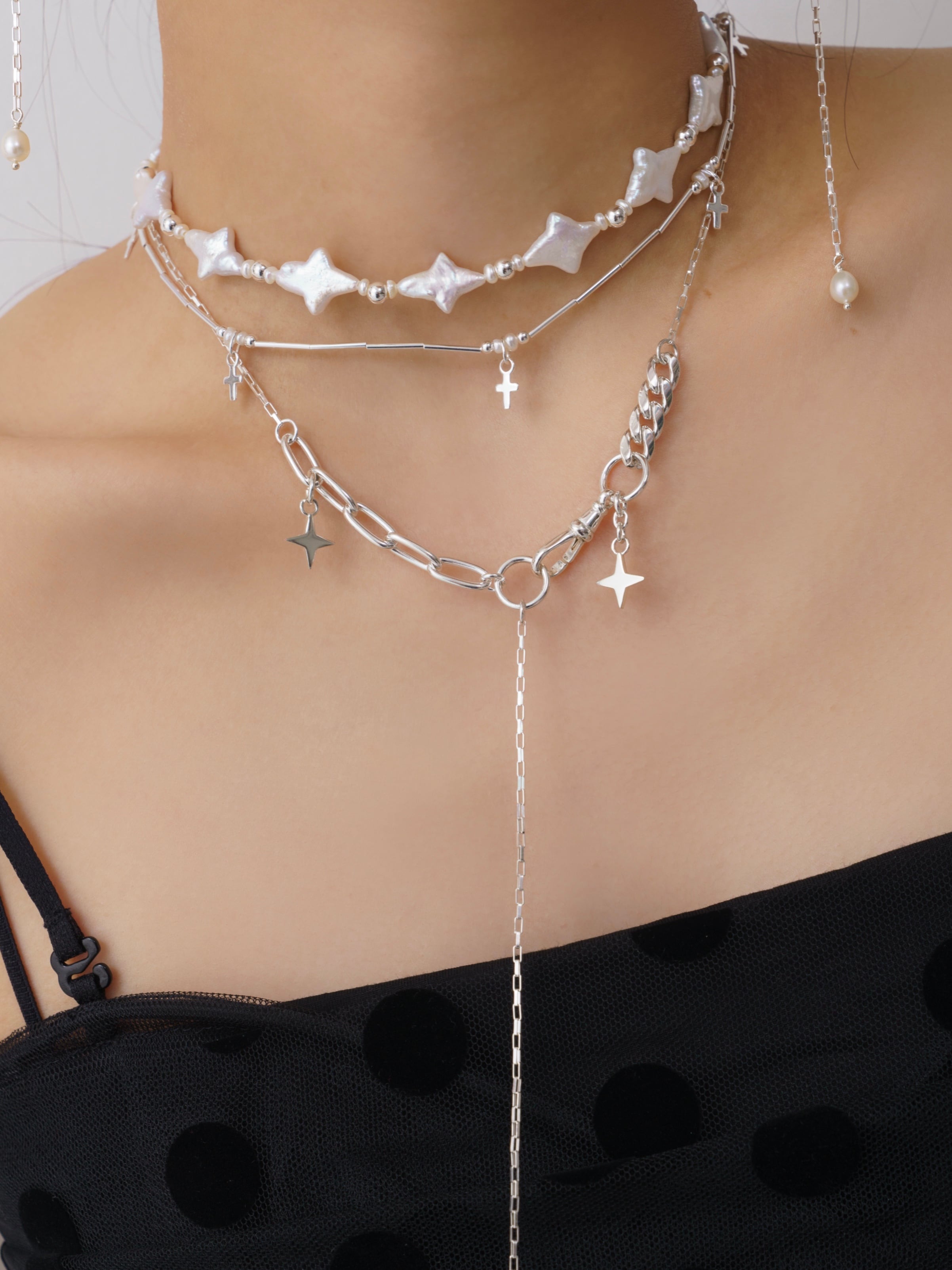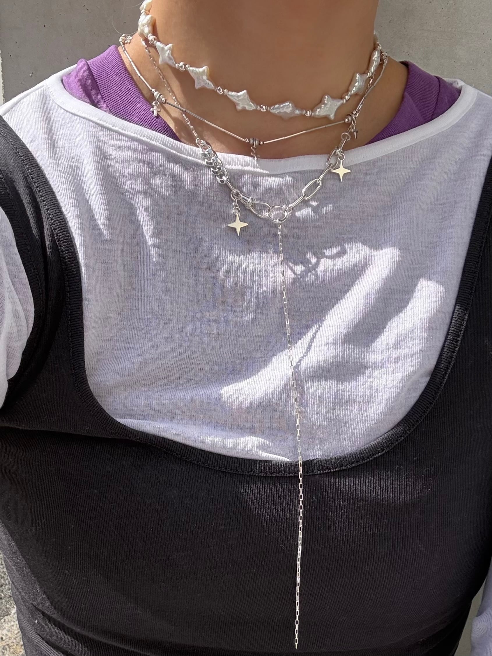 ダイヤ型スターモチーフと、色んなデザインのチェーンを組み合わせたスペシャルなネックレス✧