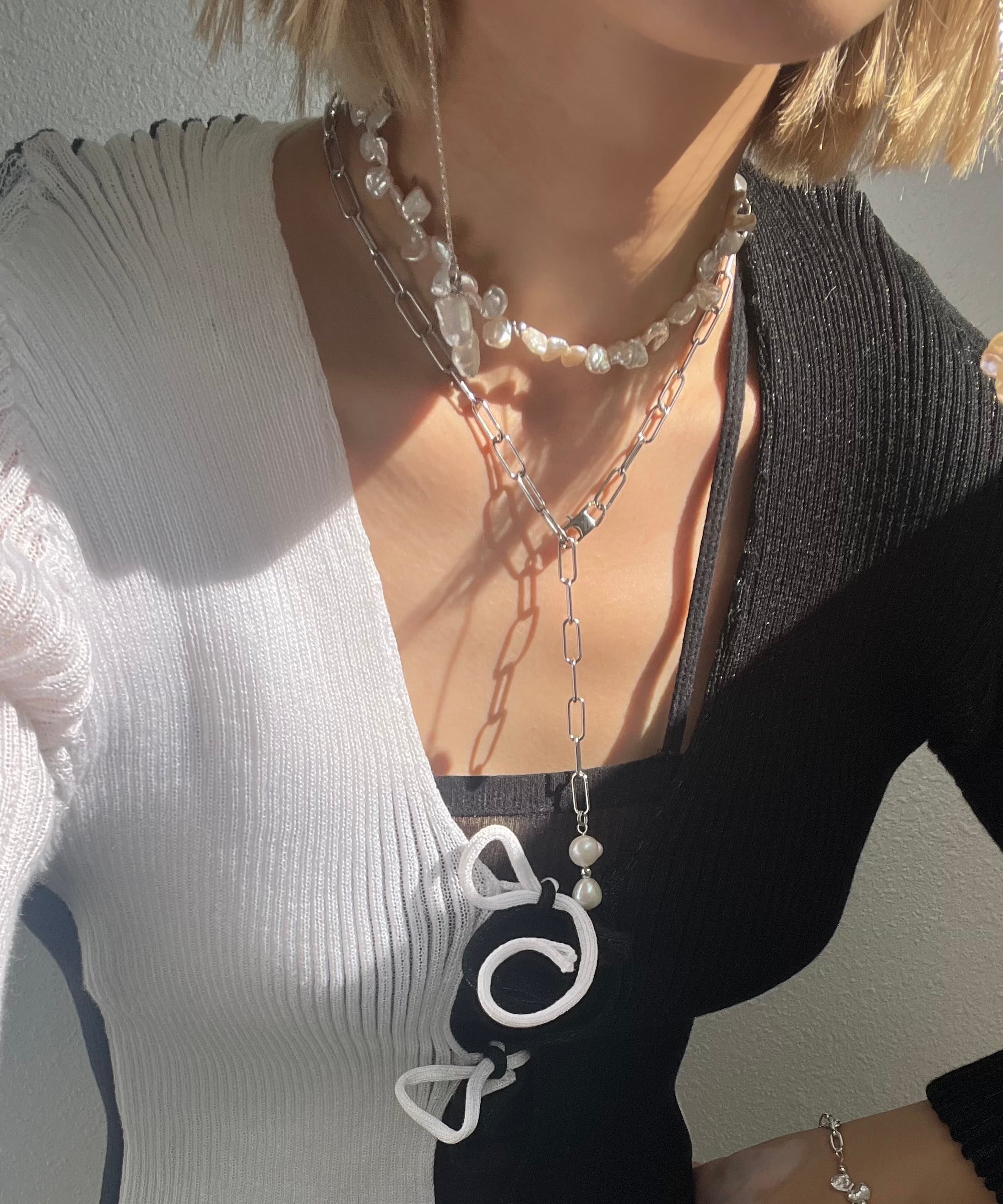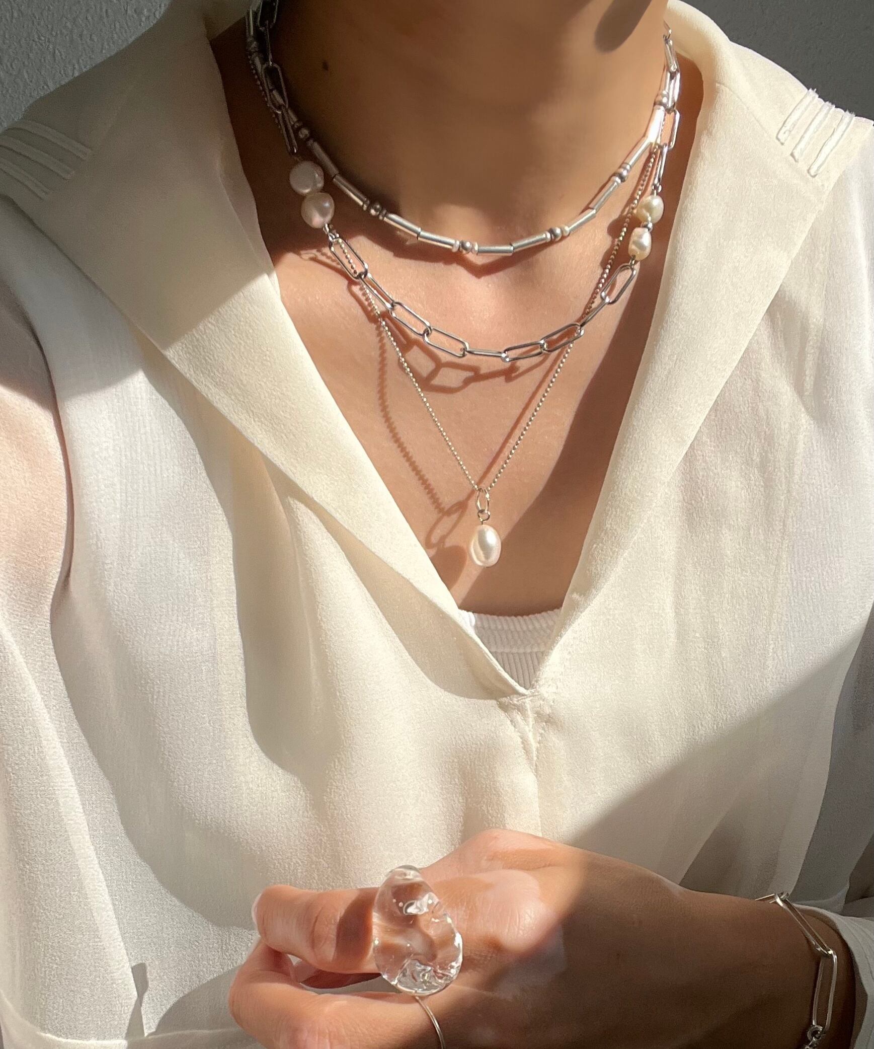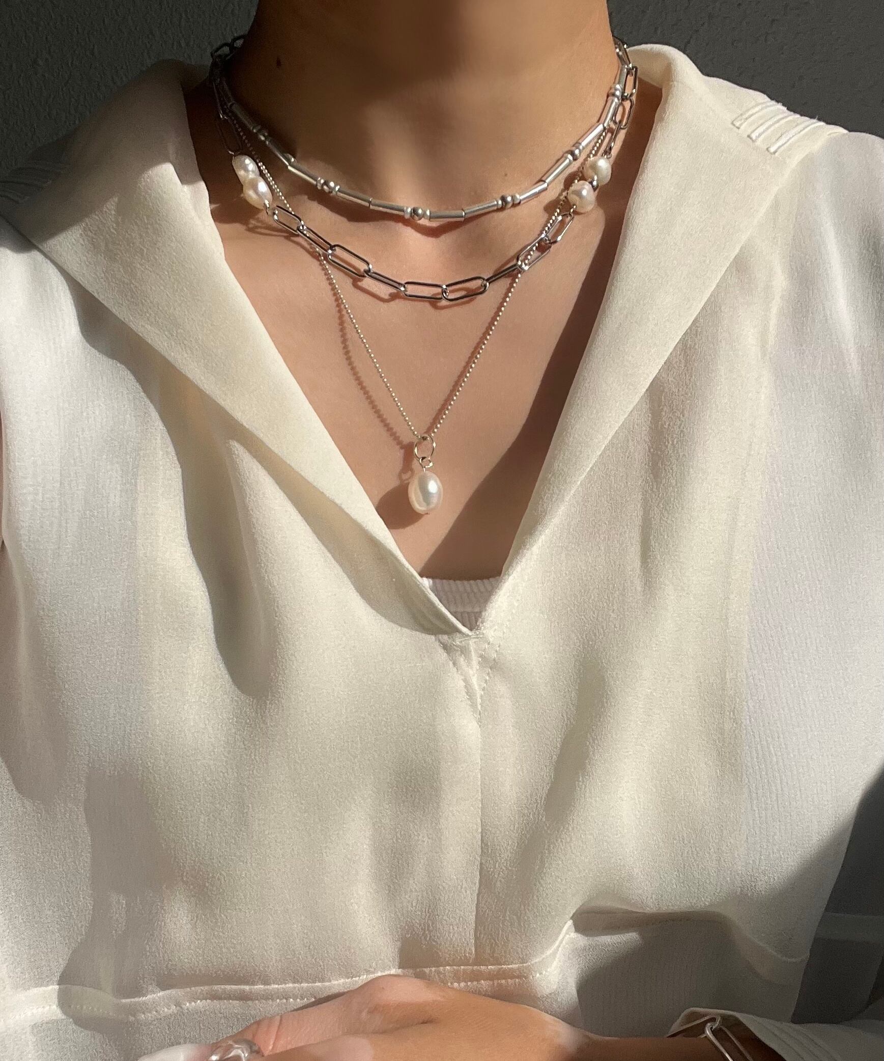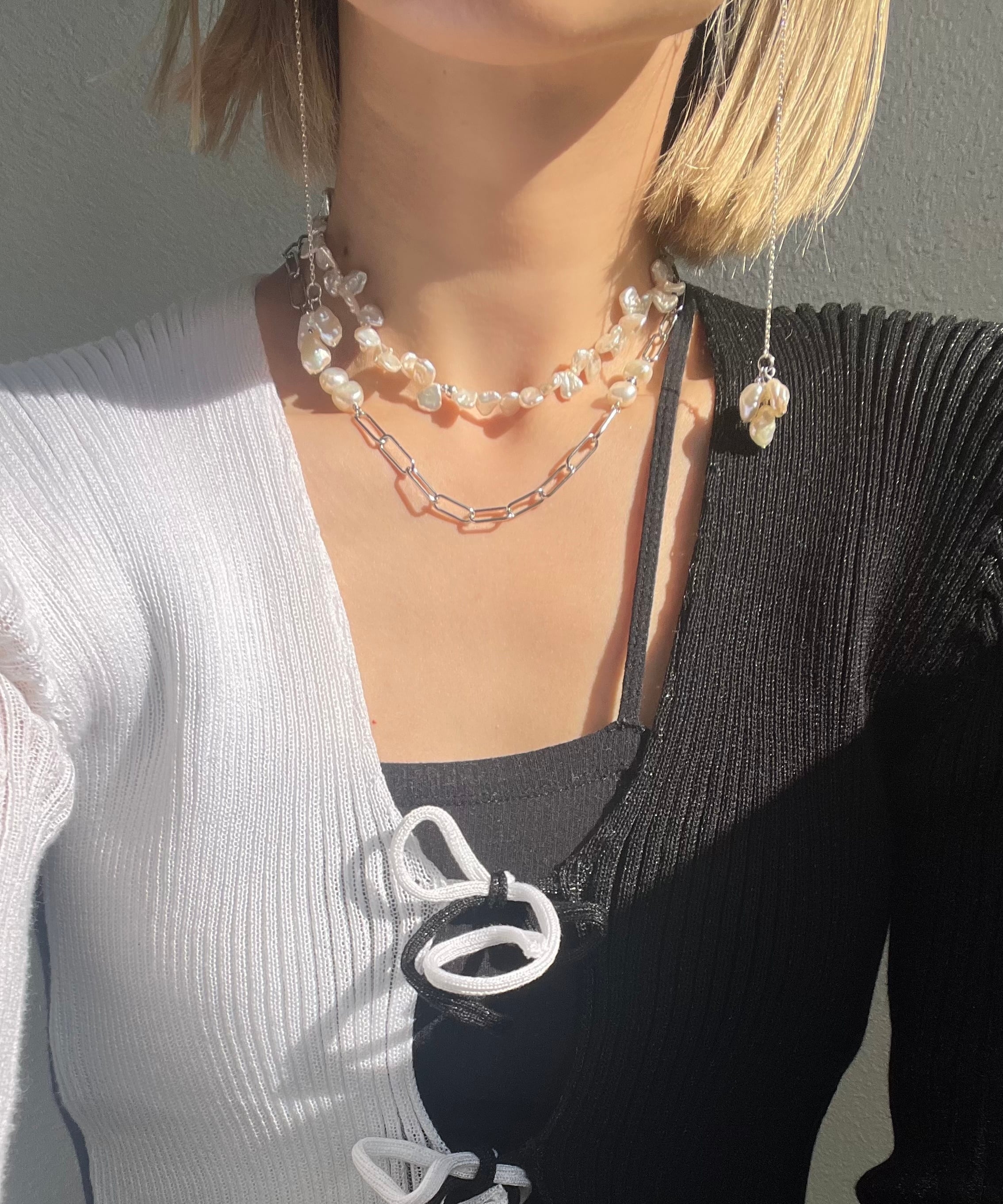 素材:丸beadsとエンドのパールを繋いでいる金具のみ合金、その他サージカルステンレス