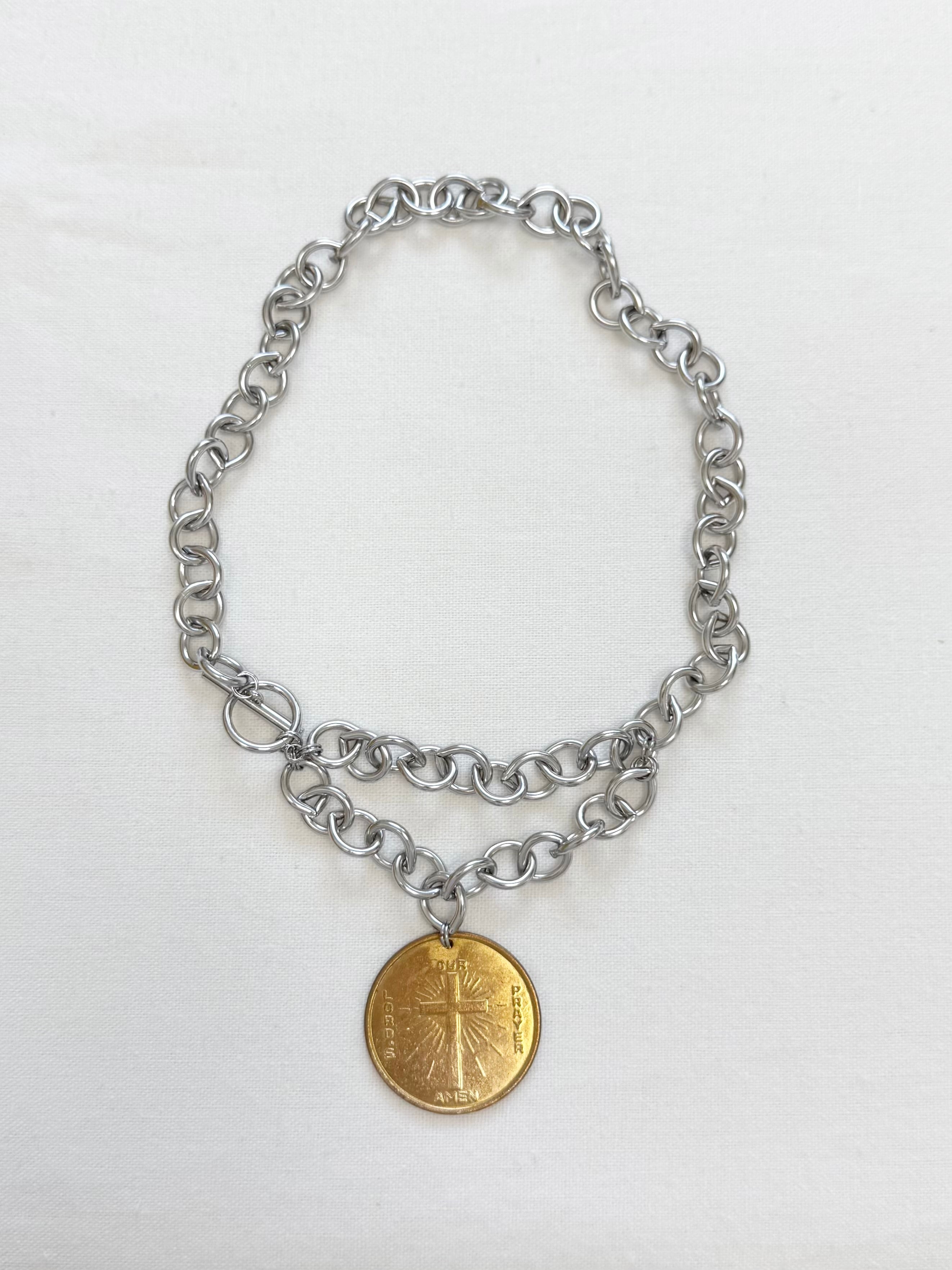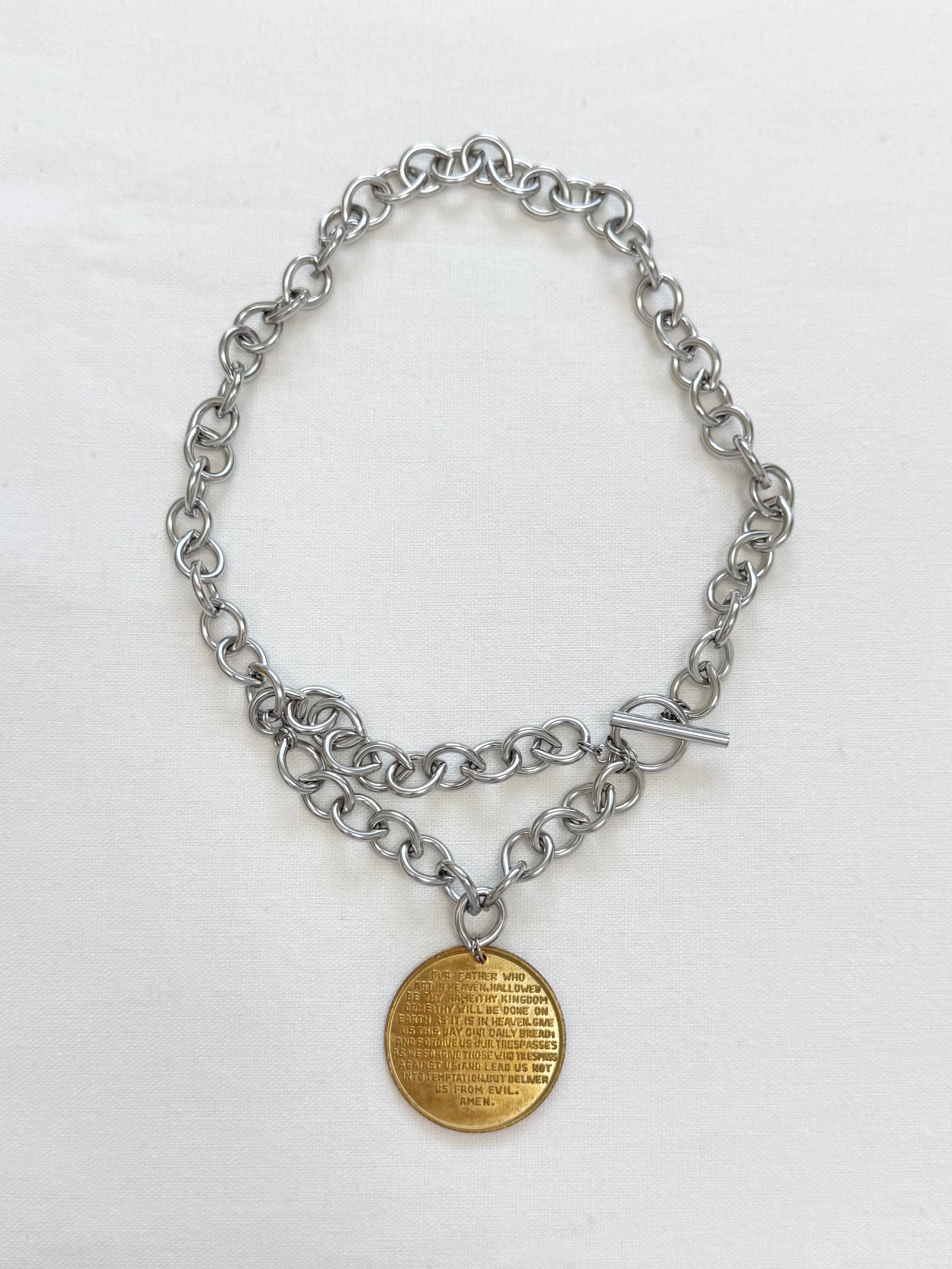 大き目なgold medaiがポイントのchainnecklace。