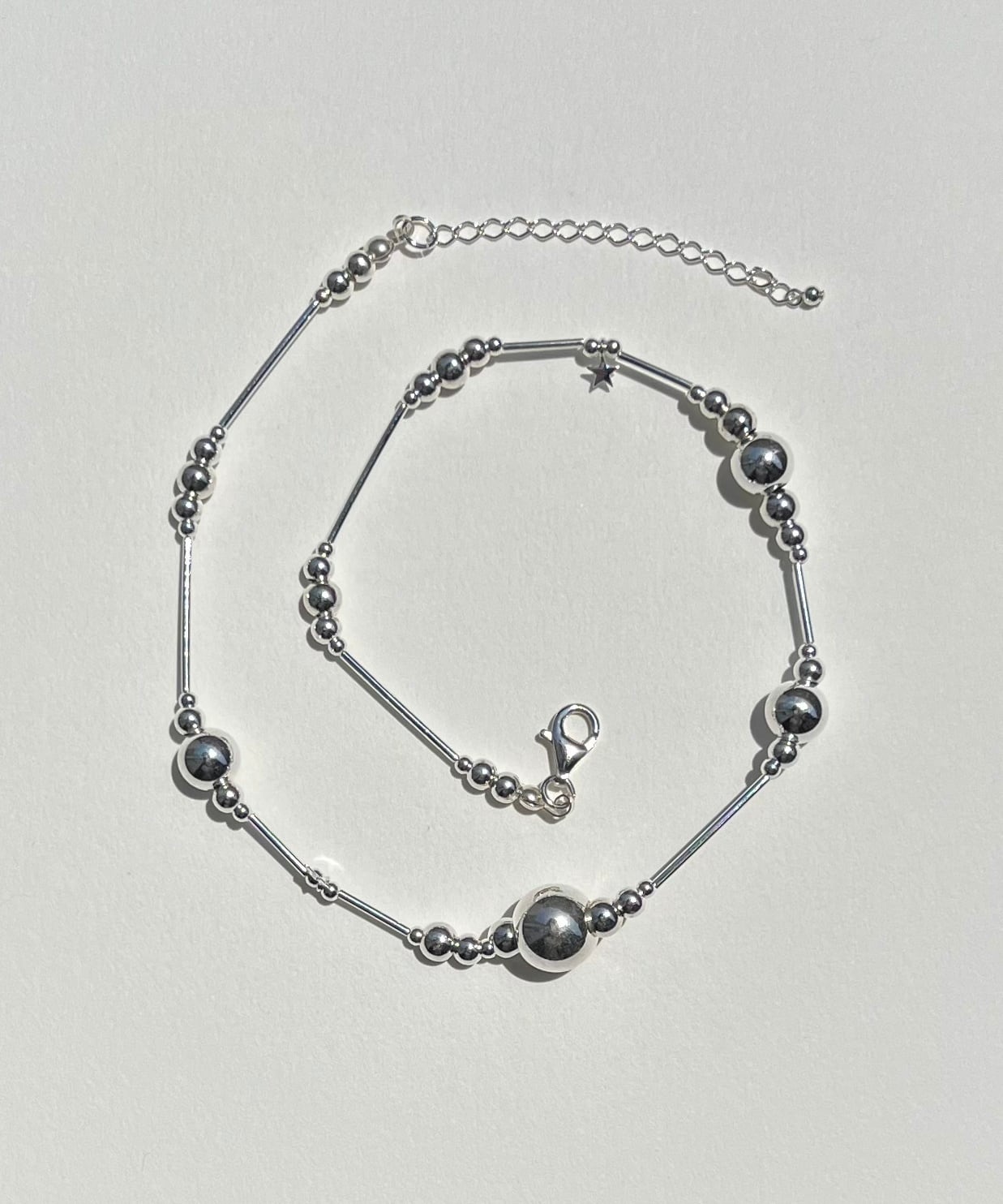 様々な大きさのballbeadsを組み合わせたnecklace。