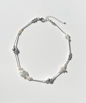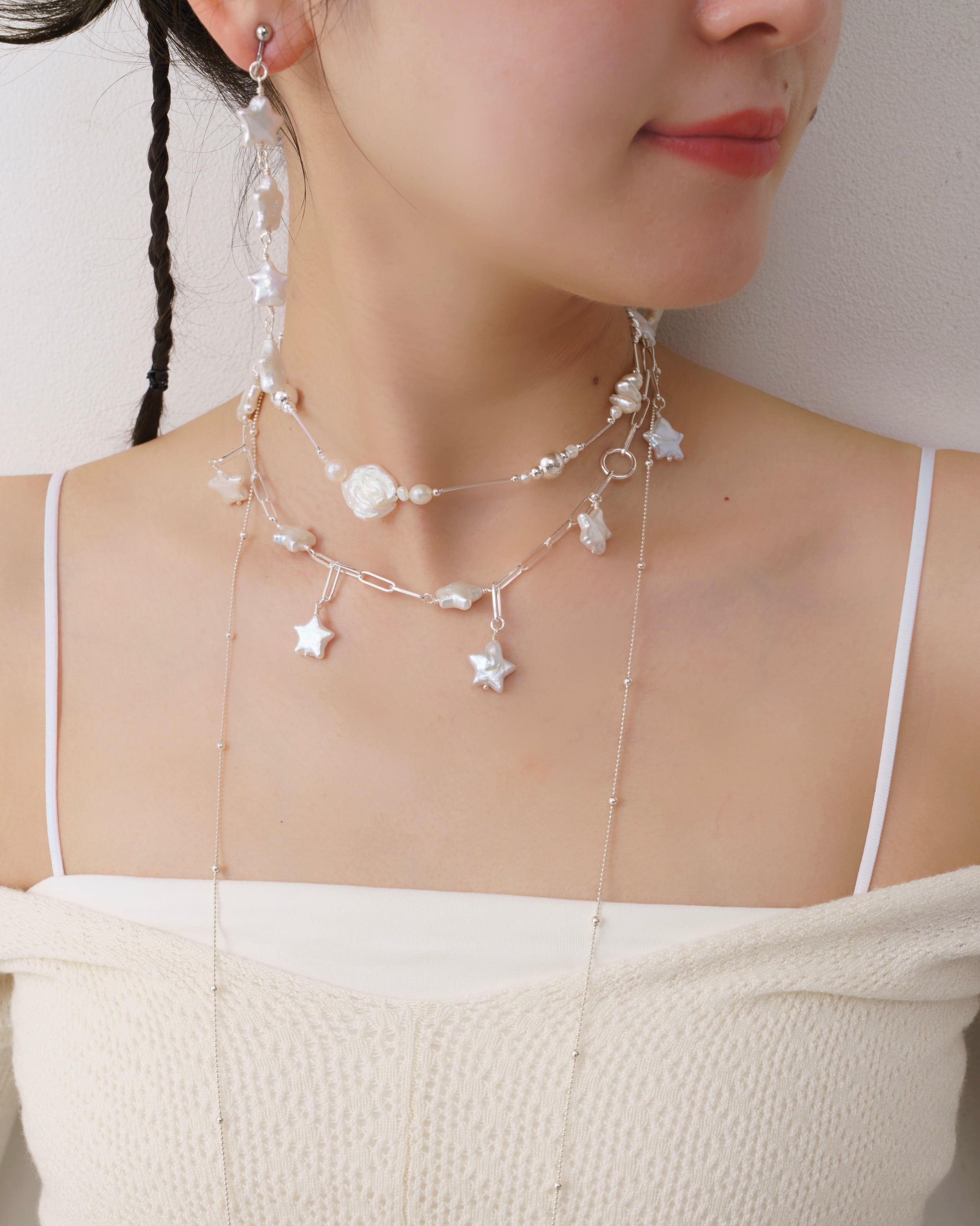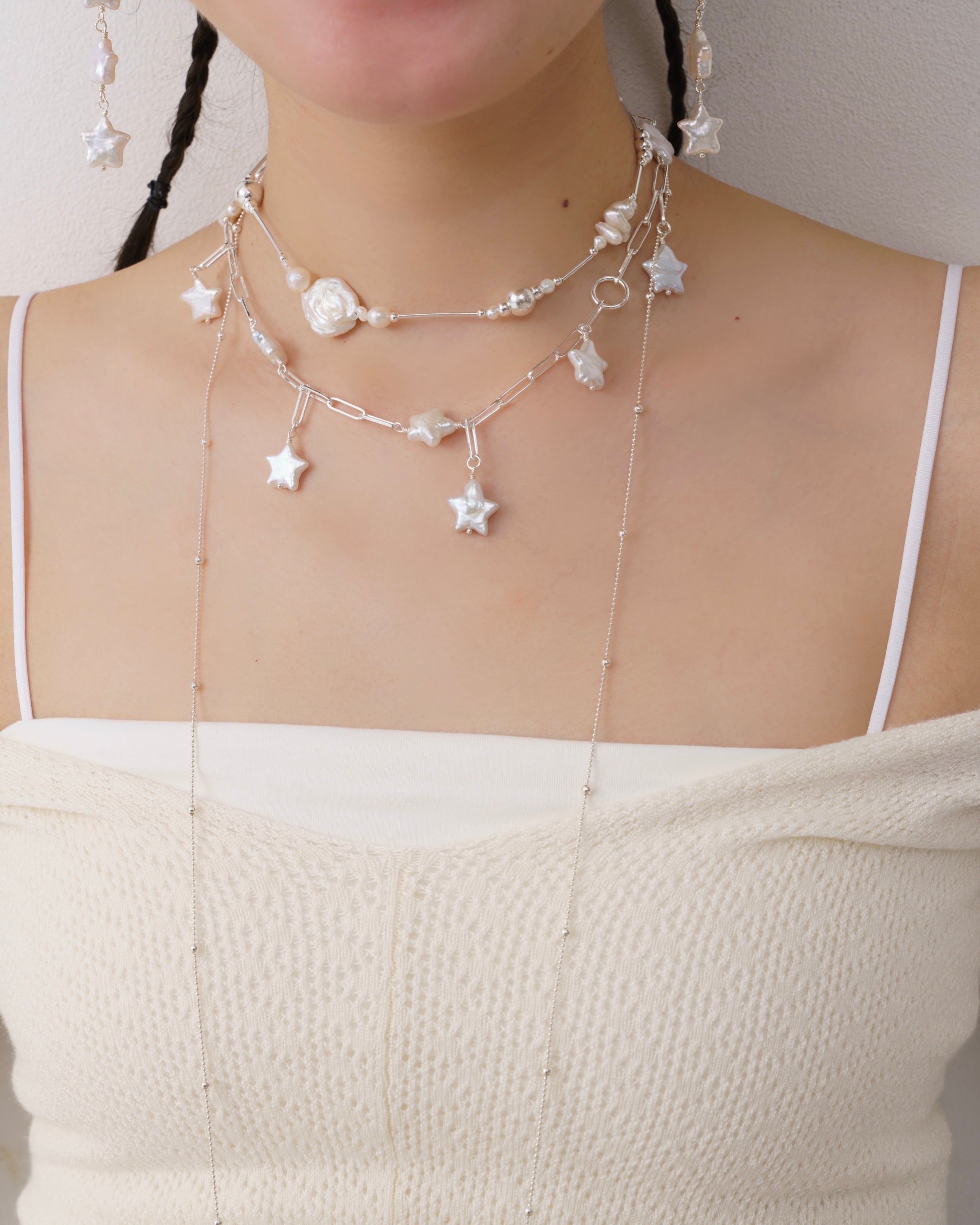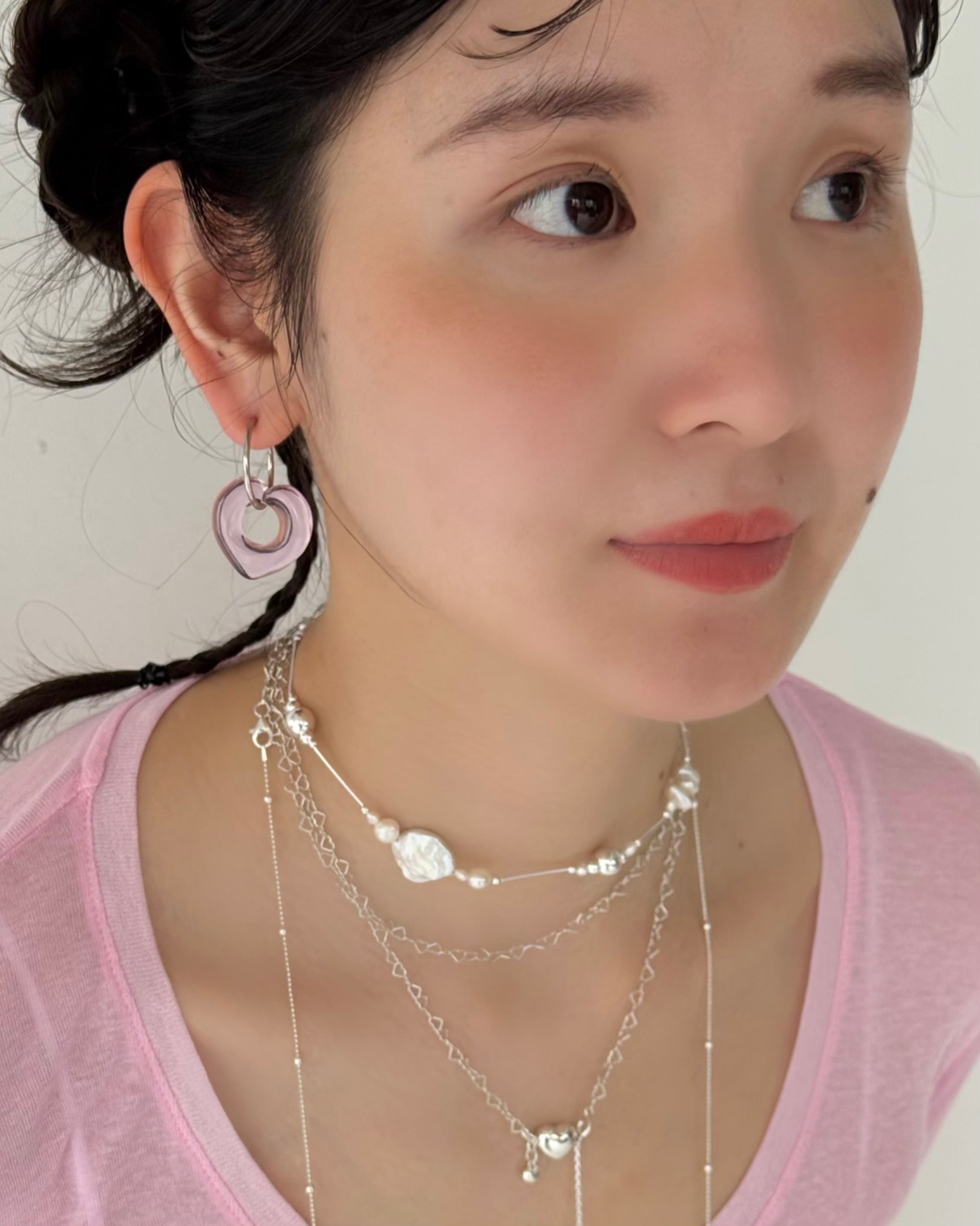 様々な大きさのballbeadsとpearl組み合わせたnecklace。
