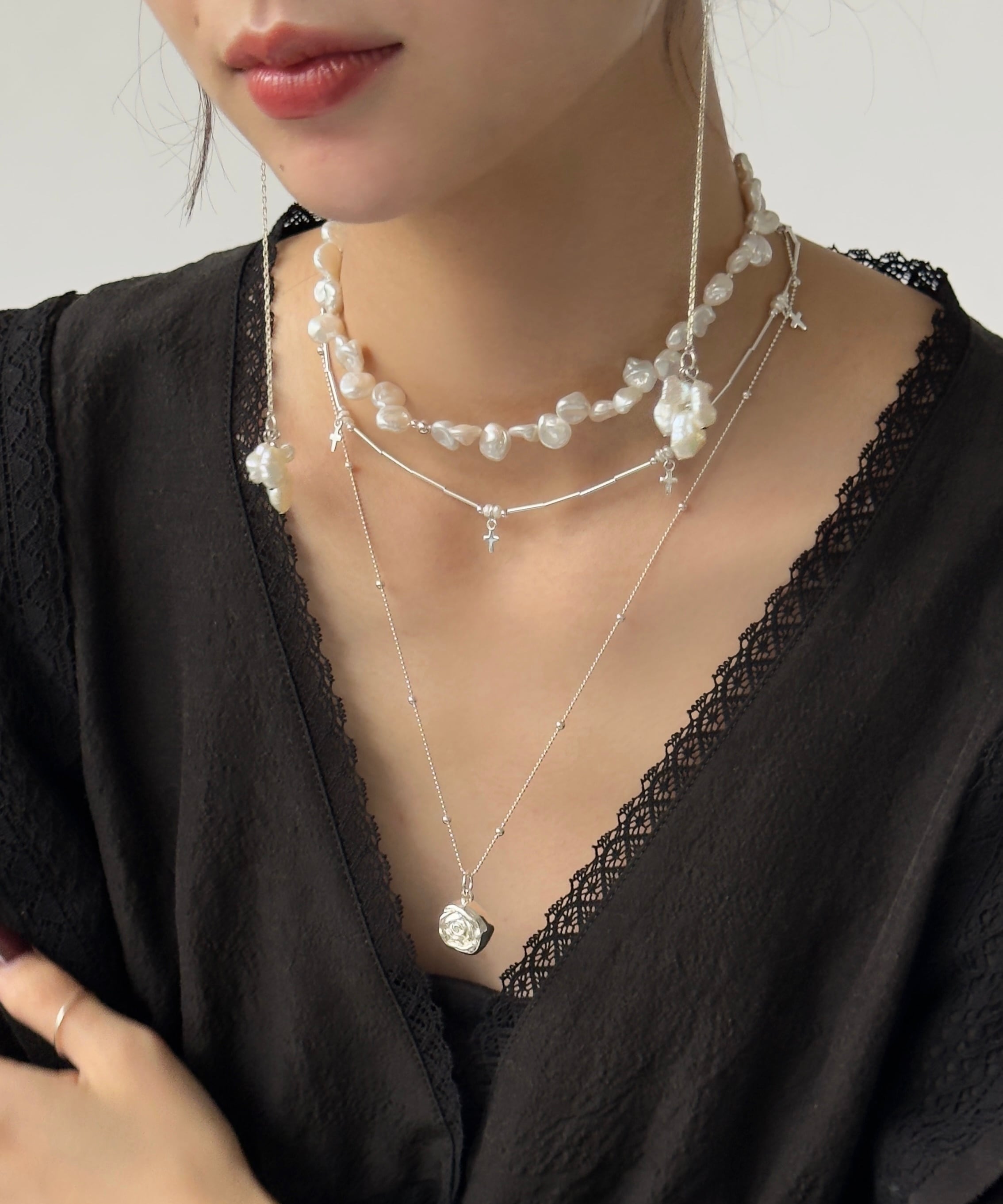 小さいcrossbeadsがゆらゆら揺れるkawaiiiiiく華奢なnecklace。