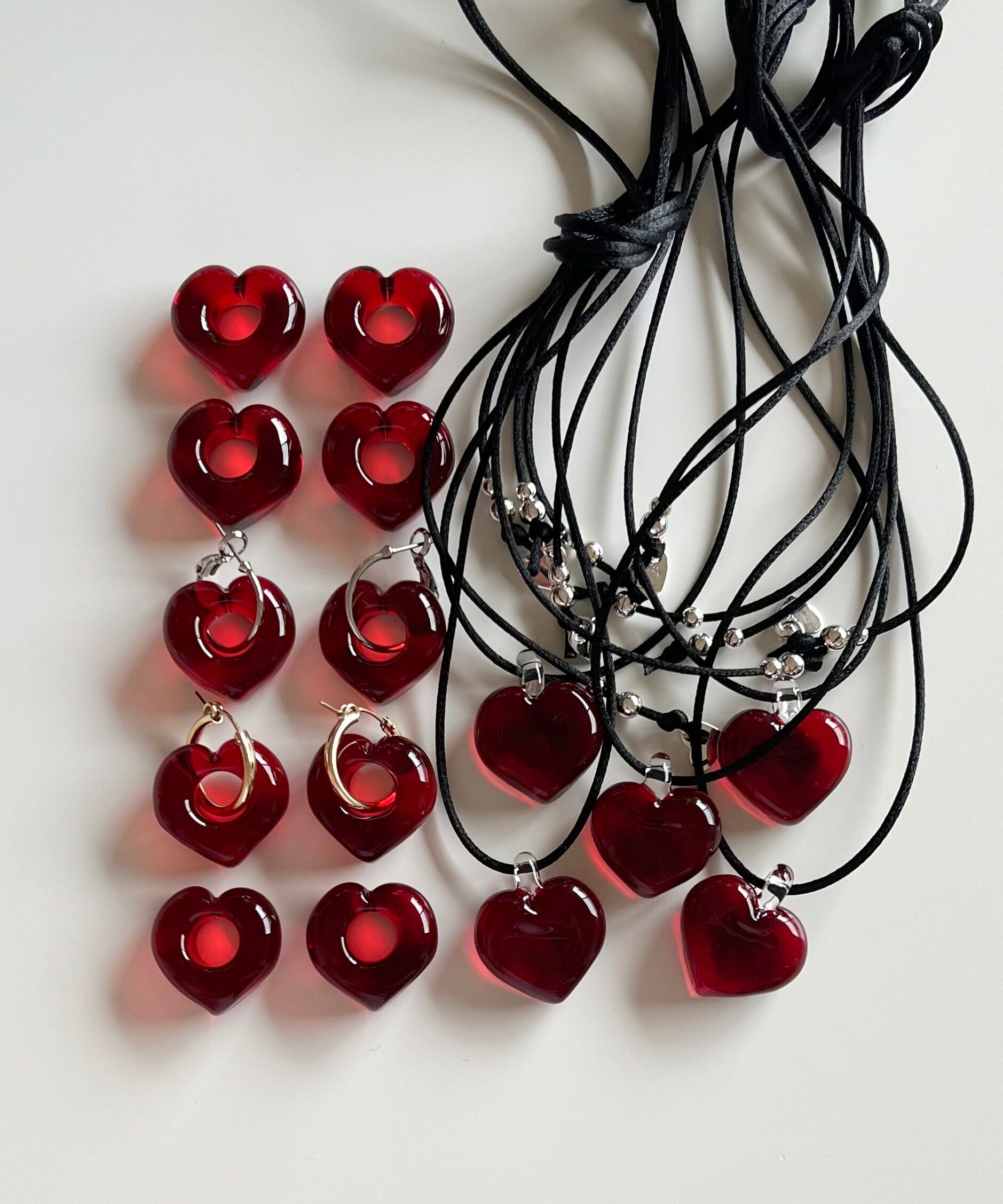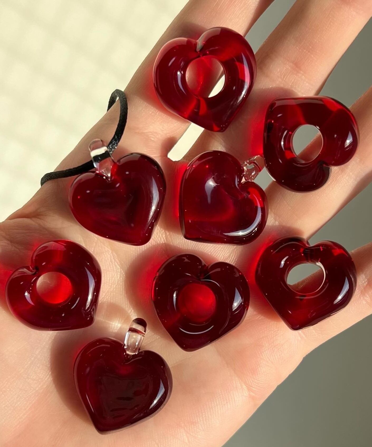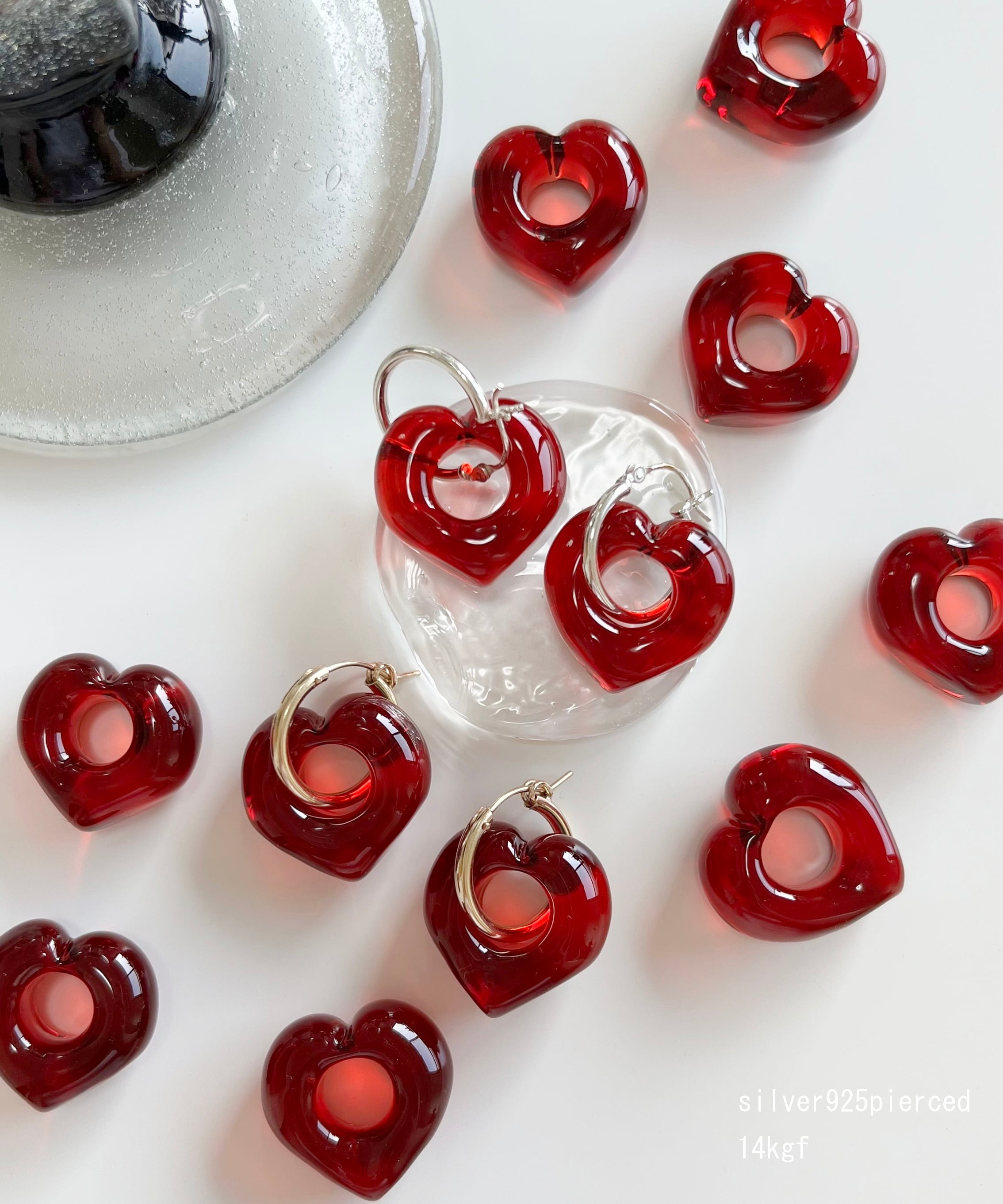 ひとつ一つ手作業で作っており、同じものはひとつもありません。ガラスならではの質感、歪み、ぷっくり感、気泡の入り方を楽しんで下さいね。左右対称ではなく手作業ならではの歪みを愛して下さいね。
