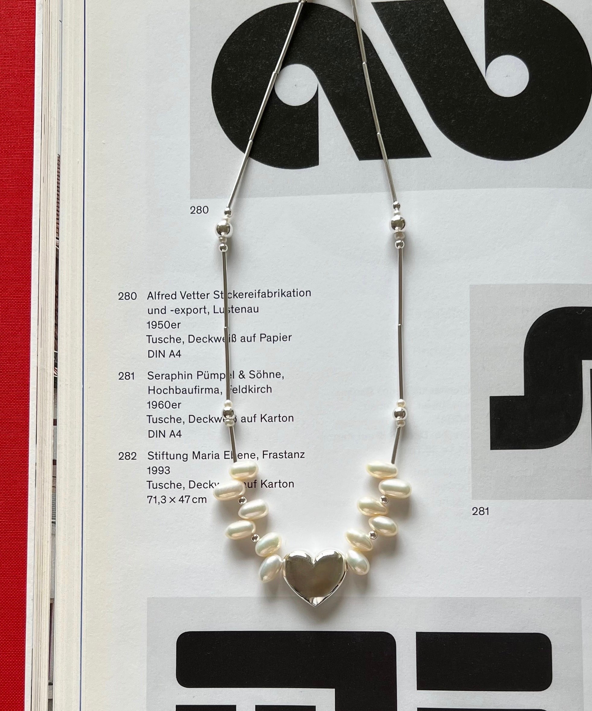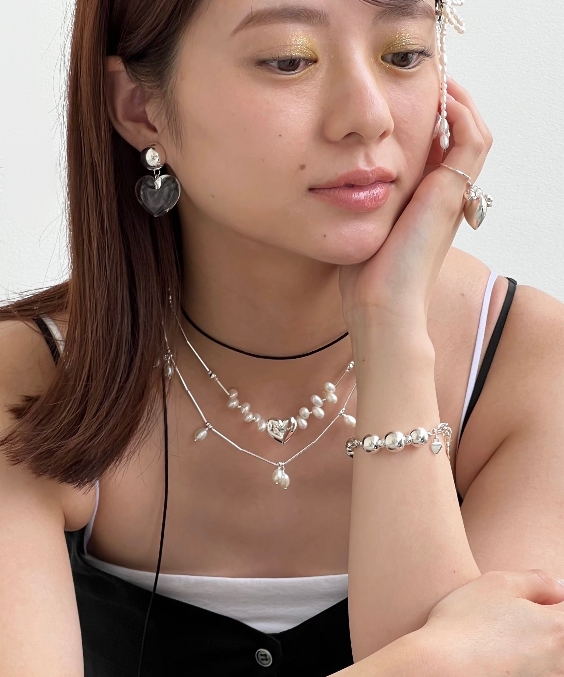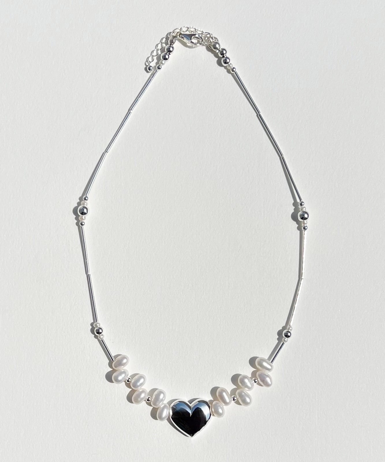 MEEEオリジナルのハートモチーフで作ったpearlnecklace.