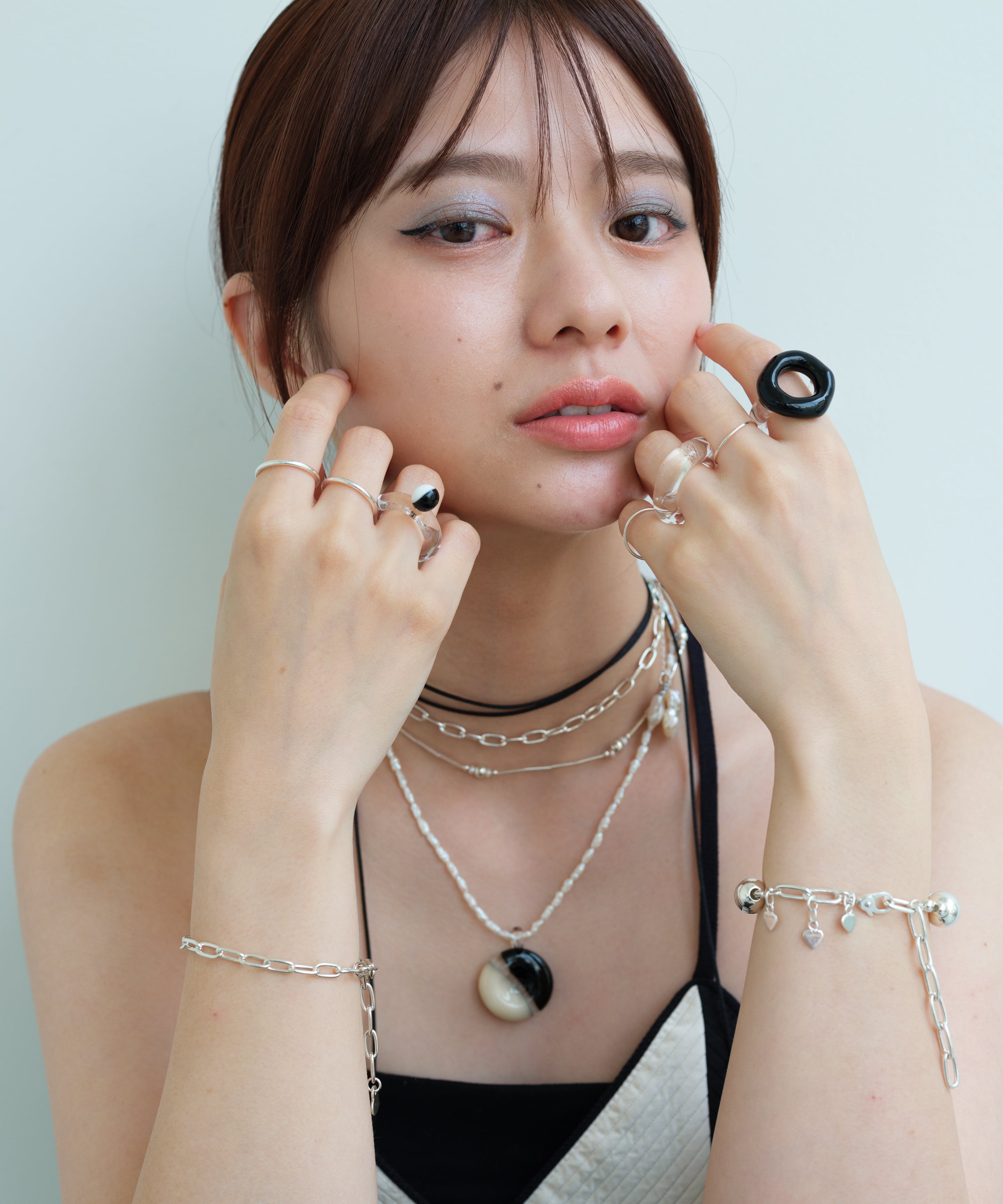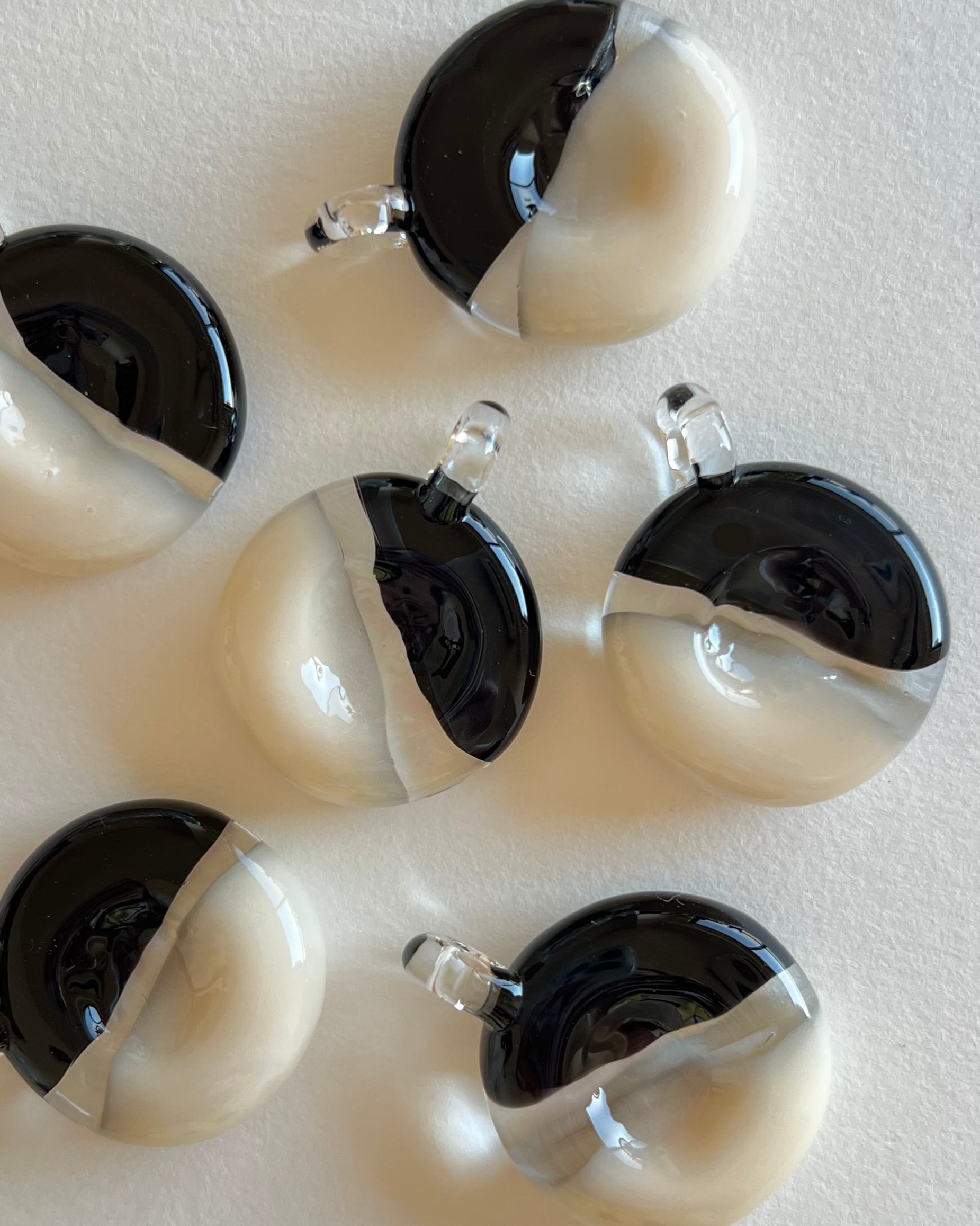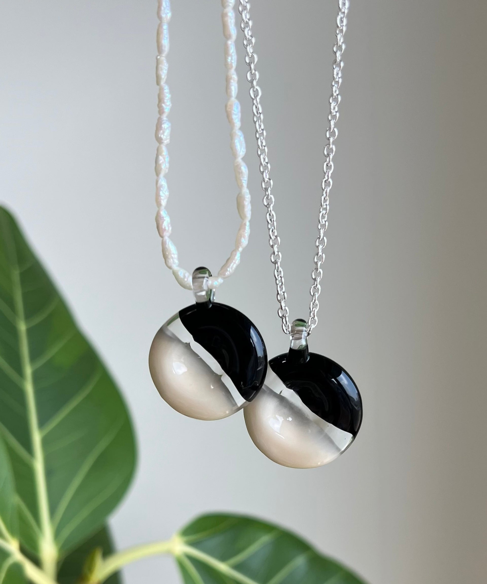 真ん中の凹みはbe ringのデザインをnecklaceにも落とし込みました! また、真っ黒ではなくマーブル模様のように出来ることがあります。ガラスならではのデザインを楽しんでくださいね。